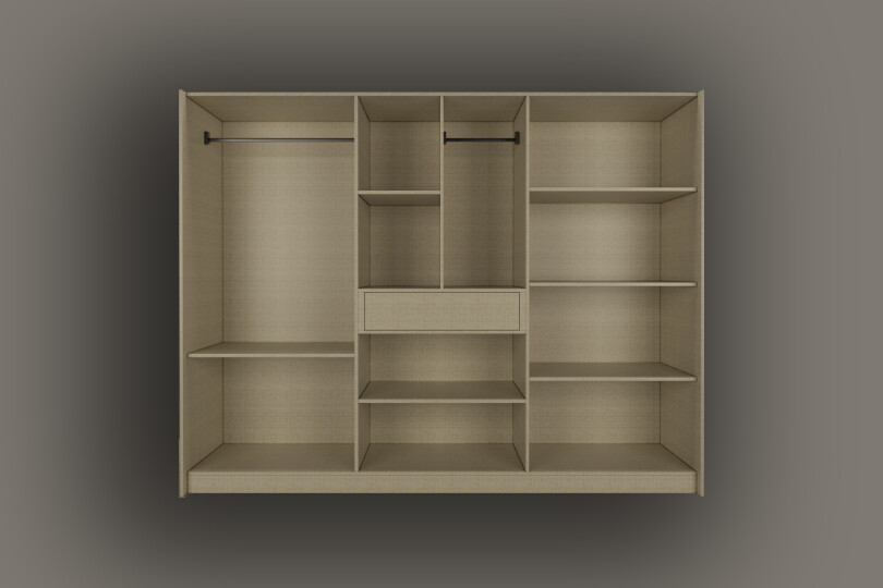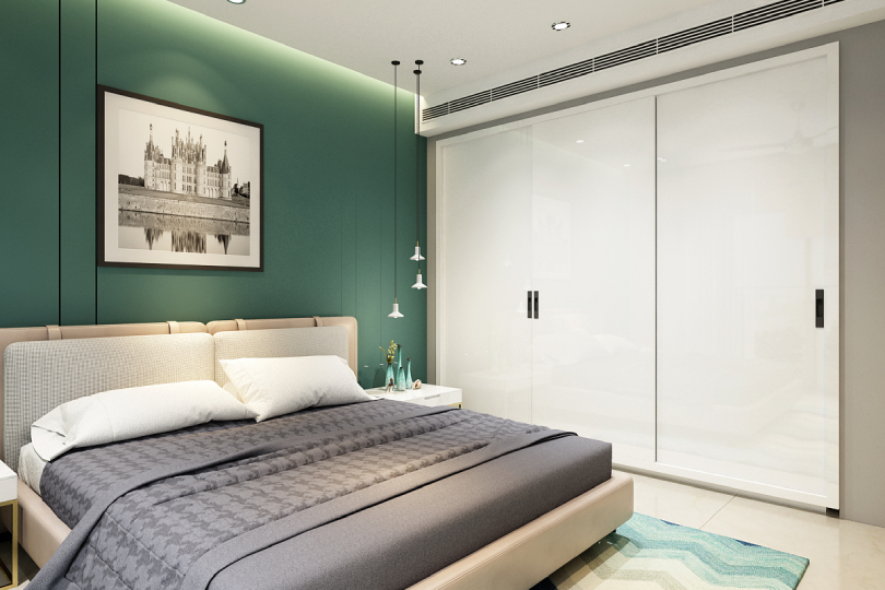 This sliding wardrobe boasts concealed handles and white acrylic shutters, creating a sleek and contemporary design. The minimalistic white finish adds a clean and fresh touch to any room, making it an ideal choice for those who prefer a simple yet stylish look.