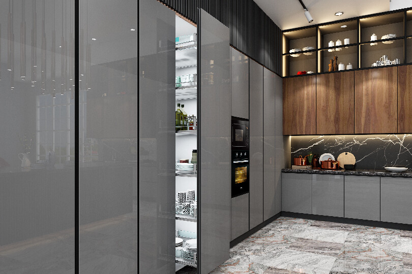The Acrylux kitchen withits free-standing islandthat doubles as a uniquedining experience with astylistic approach mergesshapes, functionality, and contemporary styling.Endowed with modernsleekness, it is both lushand chic.